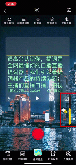 软件功能也很齐全:支持横竖屏切换、文字颜色和大小随心调、美肤美型效果在线、高清画质录制、一键上传到各大平台……操作起来简单又直观,新手也能快速上手。对于我这种经常需要拍摄的人来说,提词大师真的省了不少事,建议有需求的赶紧试试!