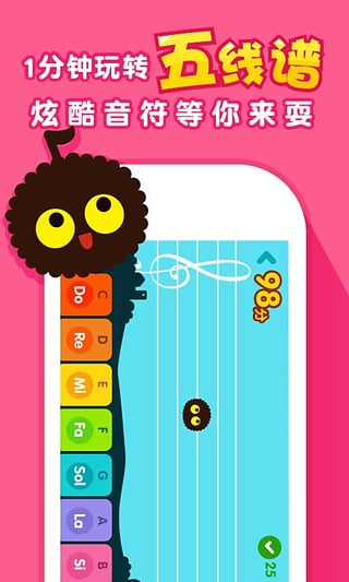 钢琴随身教app是专为钢琴初学者用户群体量身打造的一款钢琴辅助教学软件。主要拥有练习、课程、游戏和视频等4个功能模块,可支持目前市面上通用的辅导教材,用音符变色的形式标识出练习时出现的问题。还提供了课程和动画教学内容,针对不懂钢琴的初级学员,以卡通人物示范的形式,教授标准的视频弹奏方式和手指教学方式。此外,钢琴随身教为了增强产品的趣味性和互动性,还根据高音拓展、基础音阶等多个标准专门设计了十几款小游戏,比如把五线谱变为电线杆,音符变为小苹果,弹奏的过程模拟成猫头鹰吃苹果的游戏,帮助学员的熟悉程度和乐感。