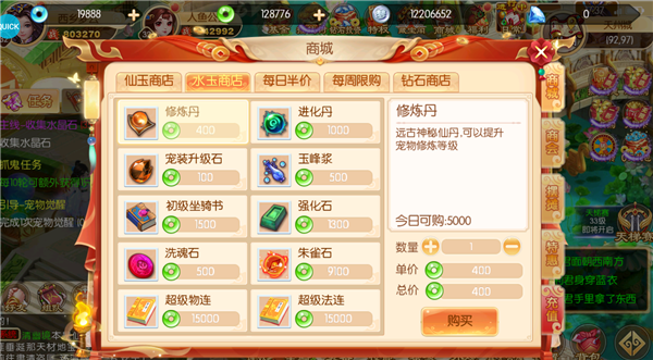 水玉投入:根据自己的需求在水玉商店买买买就行了,优先级建议宠物技能>宠物养成材料>坐骑养成材料>宝石>装备材料。