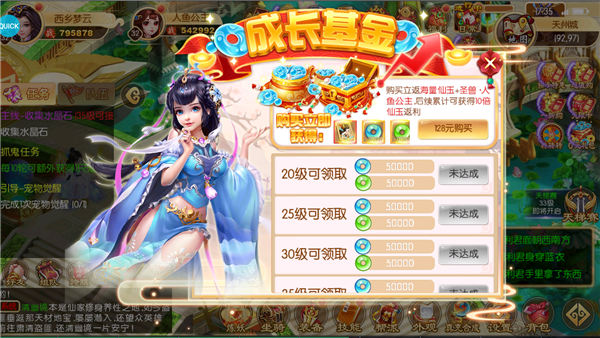 仙玉投入:建议优先购买商城中的每日半价与每周限购材料,还有余力的可购买觉醒材料与法宝材料,培养投入建议宠物>坐骑>装备>其他,记得预留仙玉参与仙玉轮盘活动,白嫖仙玉的机会可千万不要错过!