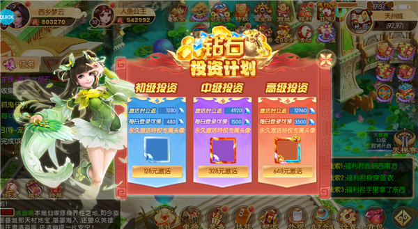 中氪玩家:建议购买钻石投资,每日领大量钻石,可以在钻石商店任性的买买买,中长线续航有保障