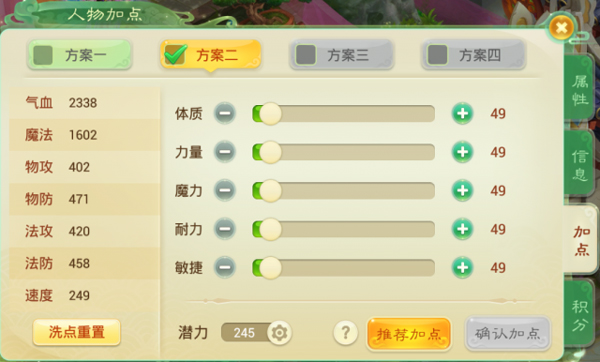耐力 增加耐力点数可提高角色物防,还可提高些许法防和速度