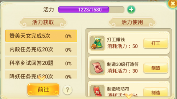 活力:玩家从事某些生产、制作等活动时,需要消耗一定的活力;在日常游戏过程中获得活跃度后可自动恢复对应点数的活力。