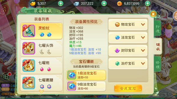 4、合成九级以上的宝石时有一定几率合成失败,使用幸运锤可以使合成几率变为100%,幸运锤可以通过挖宝获得或在元宝商城购买。