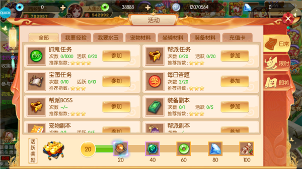 坐骑可以同时加成主角和宠物,属性提升巨大,培养优先级:等级>升阶>洗炼,解锁技能后第一时间升级技能,商会的坐骑材料有条件每天买到上限。