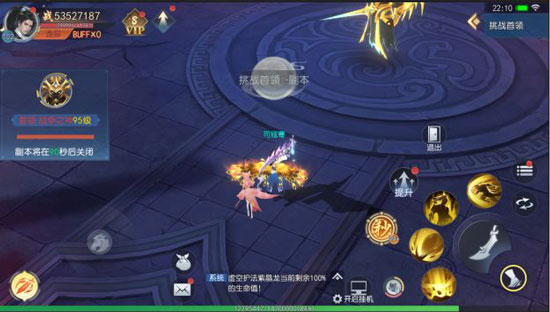 点击“挑战”进入挑战首领·副本场景,成功击杀boss后,显示结算界面。挑战成功一个BOSS之后可以点击“扫荡”快速挑战首领直接获得副本奖励。