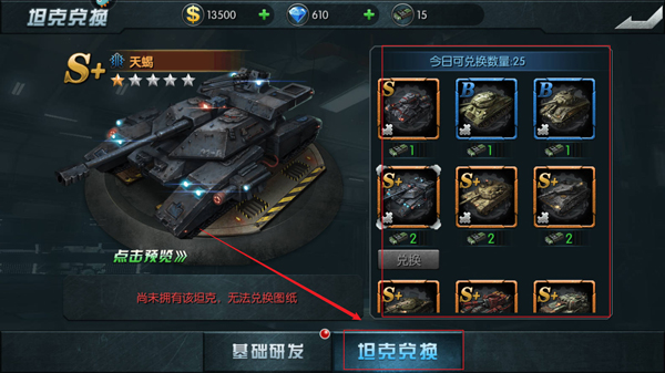 2、也可以通过屏幕首页的研发功能中的基础研发(抽奖)来获取坦克