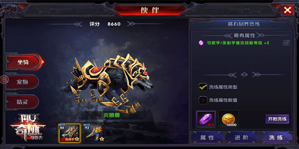 点击右上角,角色属性增益下方经验值加号,可以对坐骑进行升级,升级后可以增加基础属性,并可以在西方查看稀有属性,选择适合个人职业的坐骑。