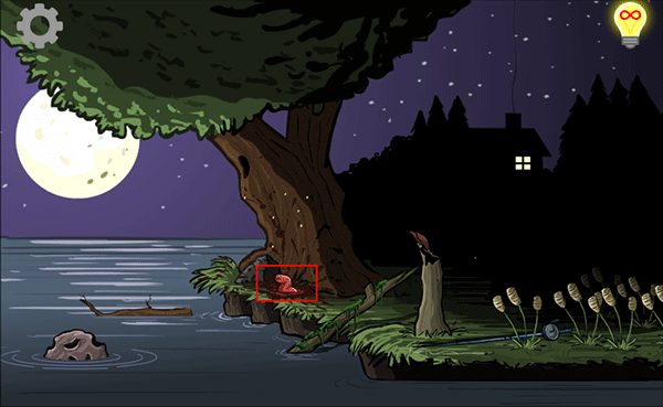 3、等树枝掉落在河里后再点一下让虫子移动到树枝上;