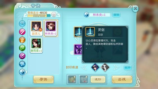林未央的特殊技能肯定与剑有关,是灵剑,攻击敌人的同时,降低其物理防御和仙术防御。其他三个技能是摄灵、鬼降、星移斗转。