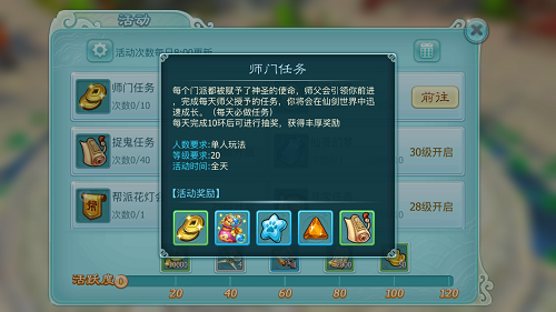 仙剑问答每天有15道题,答对问题也可以获得铜钱。