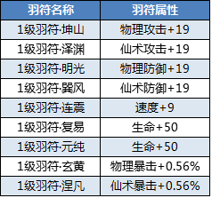 以1级羽符为例,每个羽符分别对应不同的属性加成。