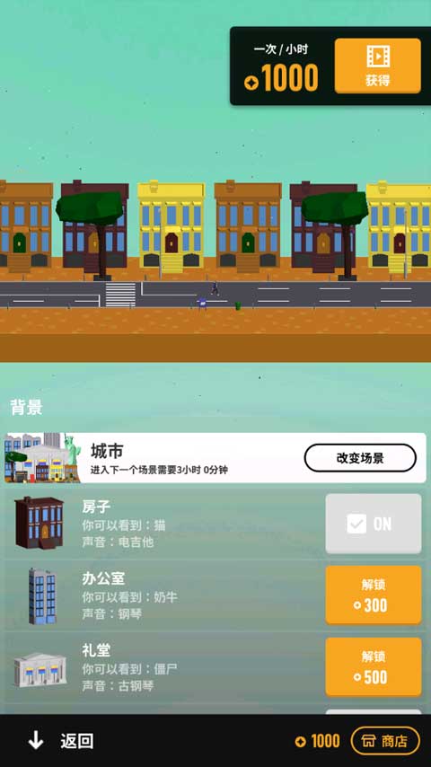 6、玩家可以用金币购买新的场景,不同场景的价格也不一样。