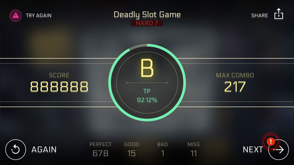 游戏主要的分数来自于我们点击的时候,具体的判定到达什么程度,是良好还是完美,当然还有不断的连击数目,如果中途没有连下去分数肯定会有很大的影响的。