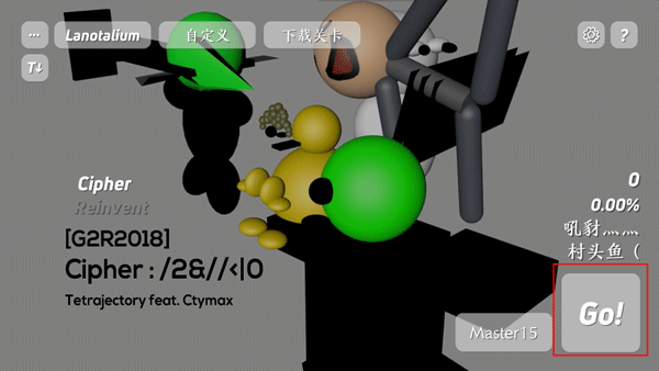 4、那么如何玩这首新的曲谱呢?就是点击右下方的“Go!”,点击中间的“开始”按钮,就可以开始玩耍啦!