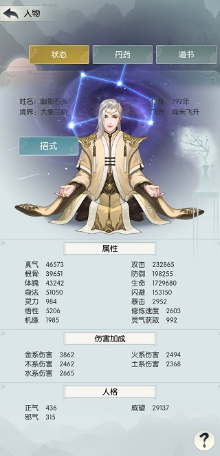 神游-每日必做300次,尽量选择最高关卡,材料灵石奖励才丰厚。注意,3次广告立即获取那个,要在开始神游时就点完。以免因为神游百次之后,神魂衰竭,导致这3次立即获取的奖励跟着减半。神游最高25关,地下材料的产出,全靠这里。千万不要浪费次数,让我神魂俱灭吧!飞升通25关后,每日可闯仙阵一次,一般要四维属性5万左右,技能较好情况过关。一共四层,七个怪的就是最后一层。每天要试一次,尽早飞升。天上资源丰富,不要试图做地仙老祖,新手村老大真的值得让你把号费了么?