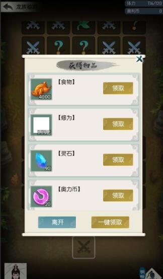刚刚只是小编给大家演示一下不同的画面而已,并非技术不行,请大伙一定要相信我啊,我真的是好人,你看,第二次不久打过去了嘛,看看有啥好东西,食物,修为,灵石,奥力币,修为看清楚了
