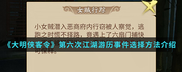 剑侠传奇大明侠客令魅族版第六次江湖游历事件选择方法介绍