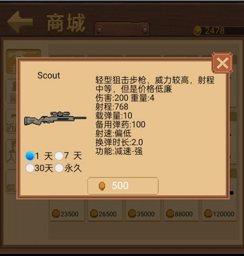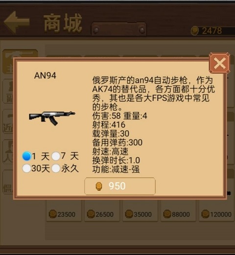 伤害高的步枪,前期很不错,不要被外表迷惑,其实它没倍镜,比AUG的伤害及弹药要高,所以我认为这把枪值得买,不过有机枪还玩什么步枪啊