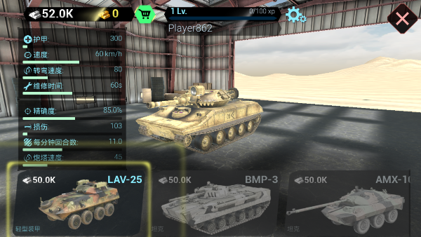 有一系列现代坦克,玩家可以用武器、升级和其他设备进行定制,以提高他们的获胜机会。