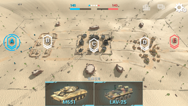 4、进入游戏A区是我方,B区是敌方,选择M551坦克开始战斗。