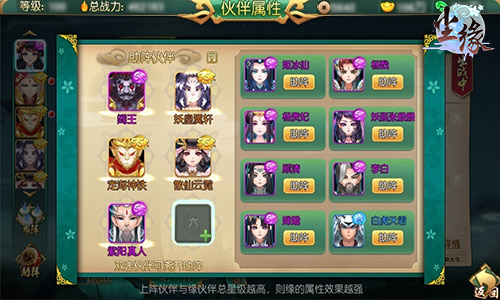 值得一提的是,每个伙伴和不同的伙伴都有缘属性,有缘的伙伴一起上阵战斗,将有额外的属性加成。但是,有缘的伙伴太多 但只能同时上阵5个伙伴怎么办?别担心,助阵系统来帮你。玩家在战斗中最多可拥有6名助阵伙伴,虽然助阵伙伴不能上阵战斗,但是可以与上阵伙伴激活缘属性效果,让战斗无往不利!