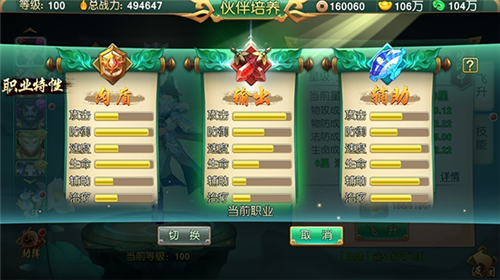主角拥有不同的技能,技能升级可以增强角色技能伤害。最重要的是,主角可在攻击、防御、辅助三种职业间任意切换,切换职业后,技能也会相应改变。