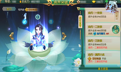 修至大乘 主角境界突破在游戏中,主角的修仙之路将从筑基期开始,通过灵寂期、金丹期、元婴期、炼神期、合道期、渡劫期直至大乘。主角突破不仅可以使主角从R成长到SSR,激活相应缘属性,还可使全队属性得到提升。而且在突破时,角色的外貌会发生变化,变强又变美哟 ~
