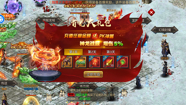 1、首充大礼包首充大礼包,绝版道具做奖励,趁策划还没后悔入手为妙。