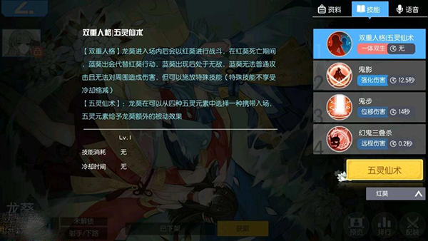刚开始进场的时候,龙葵为红葵状态,死亡后替换为蓝葵状态,在蓝葵状态下只能使用技能,无法使用普通攻击。