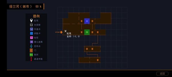 纽三河60%,坐标(0,1)需要从上面落下的时候用冲刺然后一直往右普通解锁,有一个白色齿轮,酒吧里间左边暂时无法继续探索。