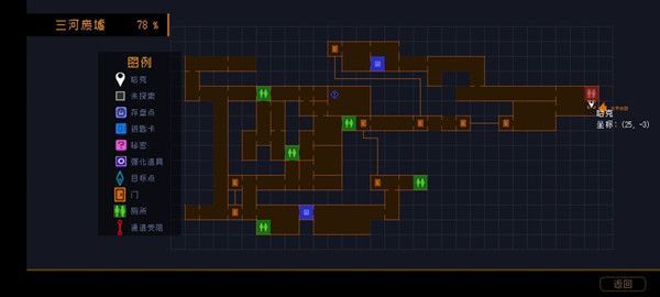 三河废墟78%应该是最高进度了,其他走不了的地方大部分是黄黑砖块挡路,还有一个小通道里的砖块阻挡回去探索的可能。