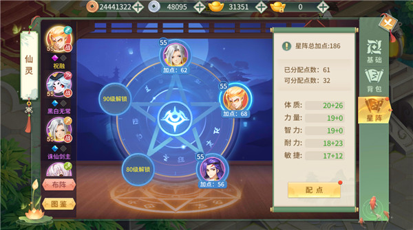 鬼谷技能有控制效果,0.5敏的速度尽量确保自己比其他输出速度快,使用星阵获得的属性点进行配速也是不错的选择,可以随意更换。