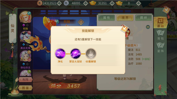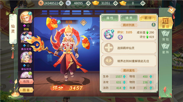 由于祝融是绝品仙灵,其评分也较高,在星阵中可以考虑上阵他,应该是一个不错的选择。