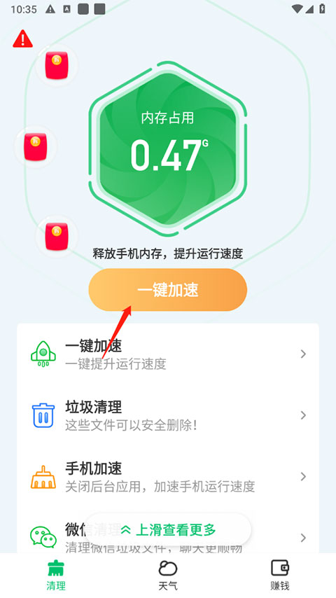 1、下载打开软件后它会自动帮你检测手机内的垃圾文件