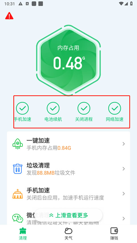 【手机加速】智能匹配进程清理策略,一键加速,结束缓存进程,系统深度优化。
