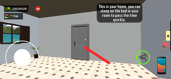 2、进入游戏后你会出现在一个房子内,操控你的角色打开房间的门去到外面