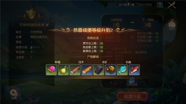 各位冒险者,为了更多的产物,努力搜集水晶升级我们的城堡吧!