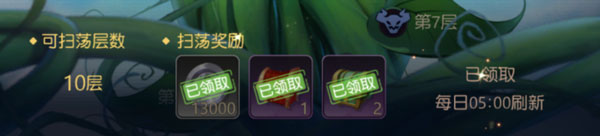通关过的层数会有累计奖励,通关层数越多,扫荡奖励越丰厚,玩家每天可以通过扫荡获得这部分奖励。