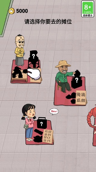 1、进入游戏,在这里选择你要去的摊位,不同摊位消耗的金币和套取的奖励各不相同。