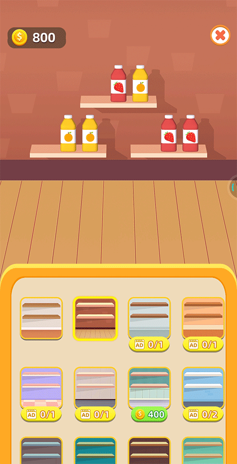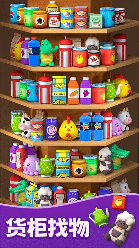 玩法简单:只需将相同图案移动到同一货架上即可消除