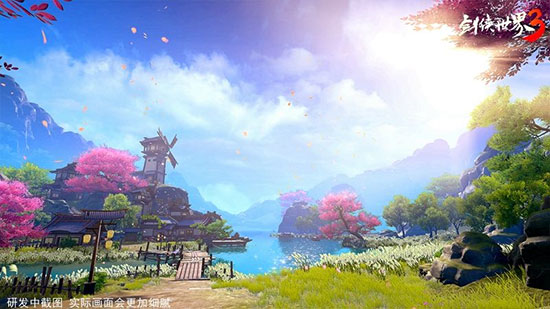 【大千世界 寄情天地河山】通过最前沿引擎技术和PBR渲染科技加持,游戏将独具东方武侠神韵的大美江湖真实还原,无论是山水田园繁华市井,还是山川五岳大江东流,锦绣山河的万千风情尽收于此。还有实时天气系统为你营造春风化雨、雪霁初晴,自然风场系统为你呈现草长莺飞、落英缤纷,充分满足你对国风武侠的绮丽幻想。