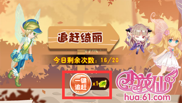 同时小花仙们也可以点击下方“一键追赶”标识,直接完成小游戏;