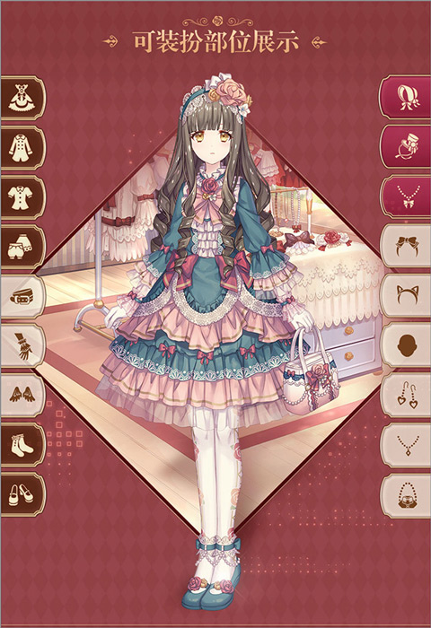 1、在游戏中,玩家可为角色装扮的部位包括,裙子、外套、上衣、裤子、腰带、手链、袜子、鞋子、头饰、项链等,玩家需要收集服装部件才能进行装扮。
