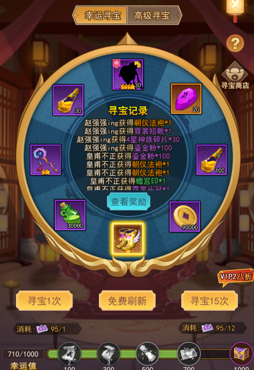 寻宝有几率获得少量鎏金粉,聊胜于无。