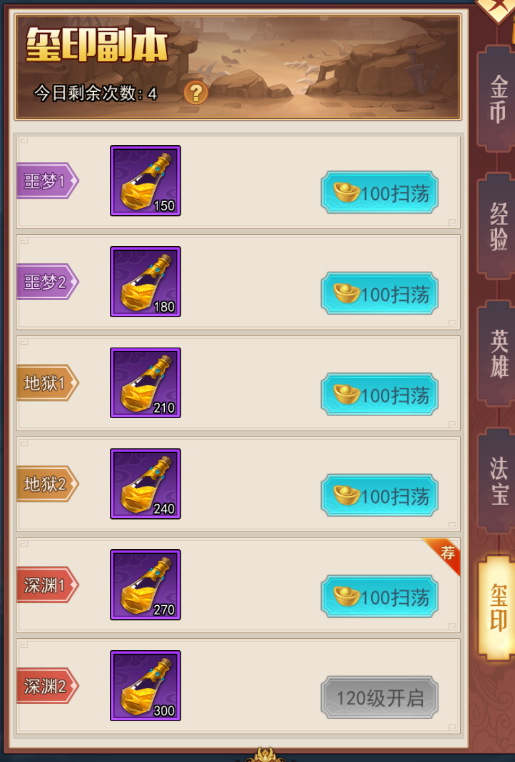 这是最稳定的来源,刷最后一个副本,每天有次免费的,根据vip等级还能获得额外的扫荡次数。