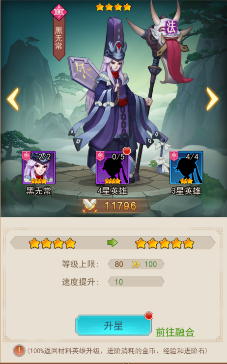 4星升到5星都是需要用到2张同类型英雄与5张4星的同种族英雄+4张3星的同种族英雄哟~都可100%返还材料英雄升级、进阶消耗的金币、经验和进阶石哒~