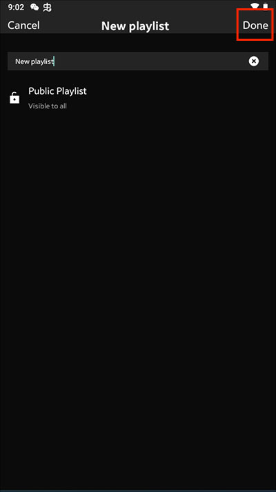 2、输入歌单名称后选择“Done”,新歌单创建成功。