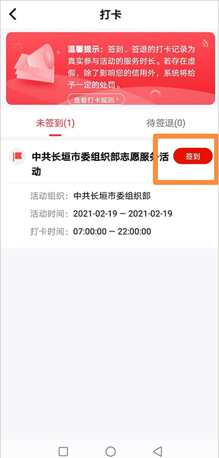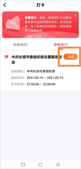 志愿者使用签到签退功能,记录公益服务时长,此时长既是参与志愿服务活动的有效证明,也是个人信用的重要体现。