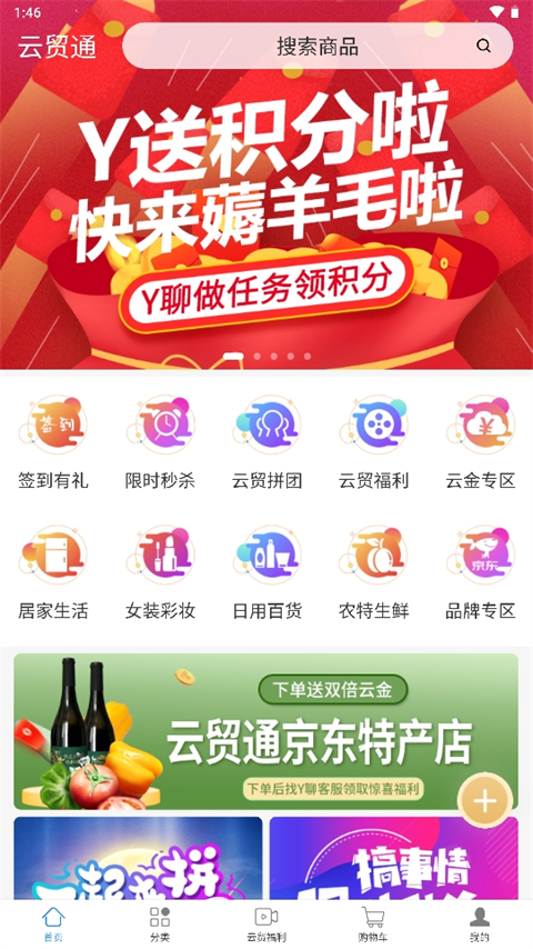 而且,平台的分类也非常的详细,用户可以根据自己的购买需求进入相应的专区,能够大大降低了用户在挑选时所耗费的心力,同时也可以根据搜索框输入关键词找到你想要的商品。当然,平台内的福利非常的丰富,新人入驻即可领取专属的折扣券,各种满减也可以享受不断,同时还有每日活动可以参与,如限时秒杀、全场打折等,购物还有返利积分,可以累计积分来免费兑好物,有需要的用户赶紧来本站下载体验吧。